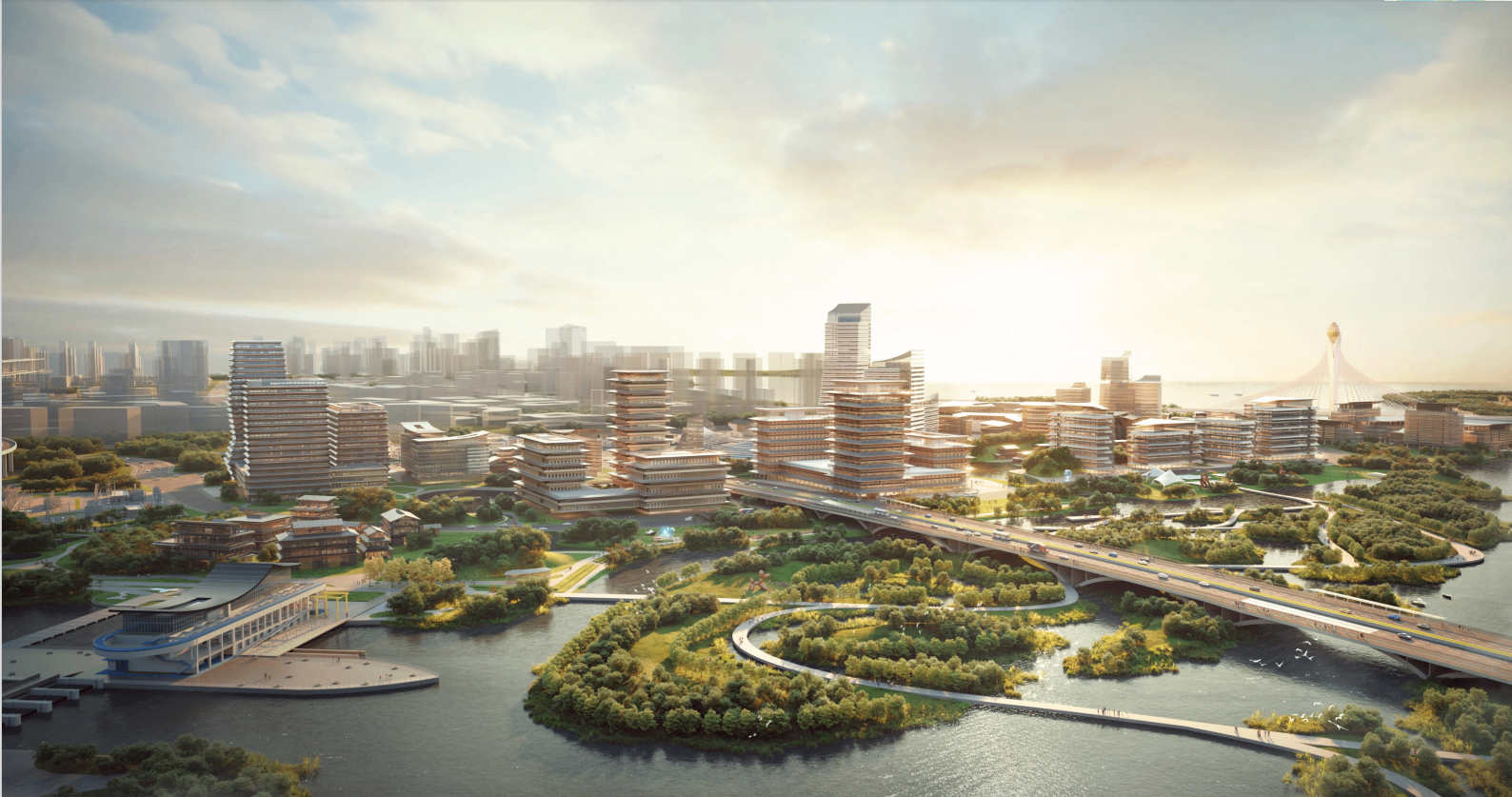 灵犀岛人工智能小镇总占地面积1500亩,建筑面积约97万方,整体投资超百亿。